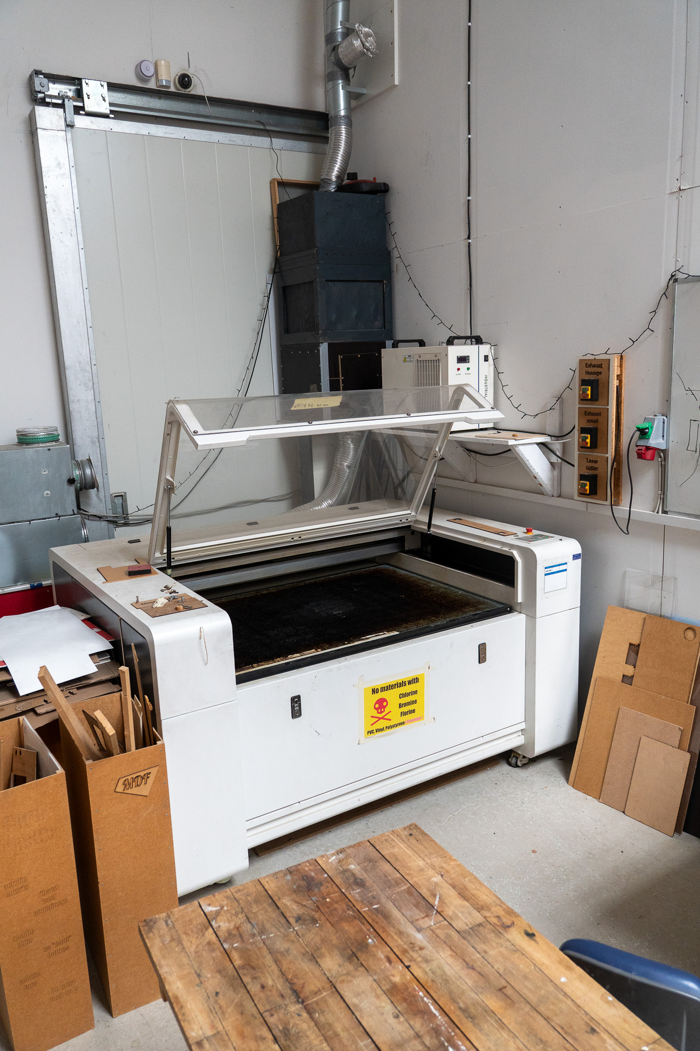 - Place leftover scrap materials in the assigned containers, next to the laser cutter.
